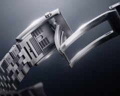 The name Trinova captures the essence of the collection. “Tri” refers to the three-fold symmetry and bold triangular hour markers, each precisely faceted with seven surfaces to amplify depth and create a dynamic play of light. “Nova”, an astronomical term for a star that suddenly erupts into brilliance, reflects the way light plays across the surface — shifting, reflecting, and revealing new depth with every glance.